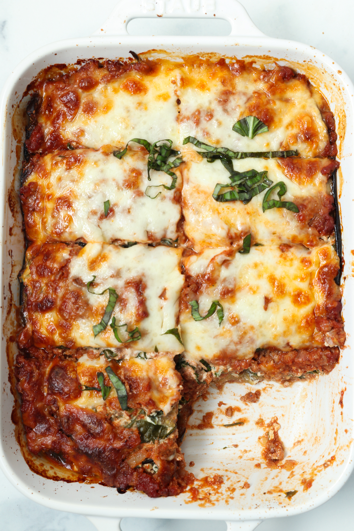 Rest & serve: Let lasagna rest for at least 10 minutes before slicing. Garnish with fresh basil and serve warm.