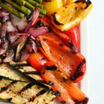This grilled marinated vegetable platter is colorful, full of flavor, and perfect for summer BBQs. Marinated overnight and grilled to perfection, it’s a healthy side everyone will love.