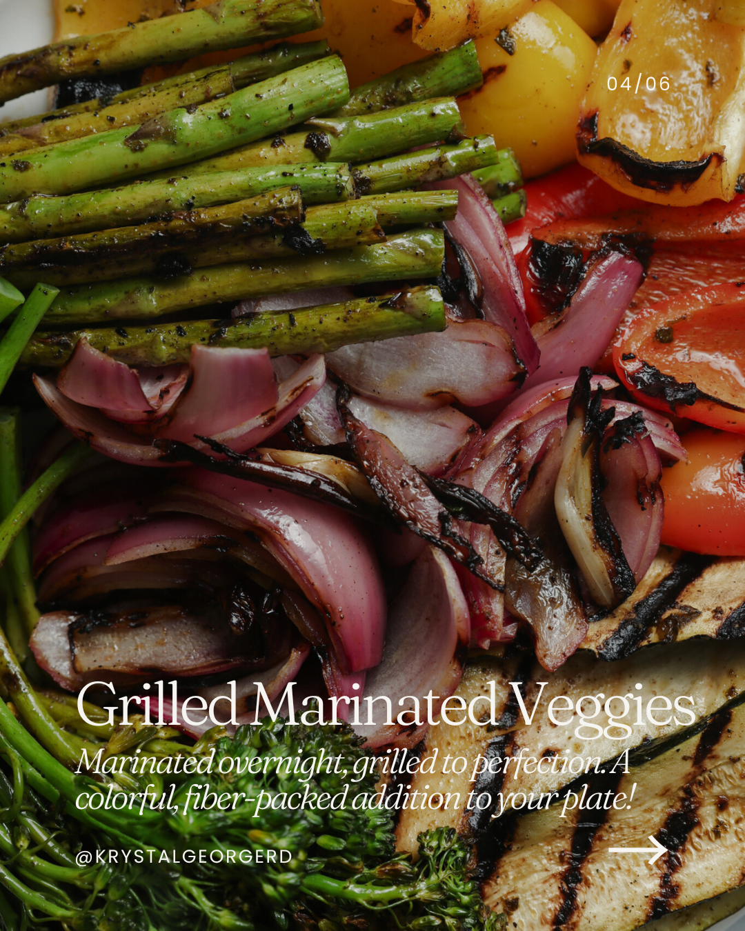 If you want to add some balance and fiber to your Memorial Day menu, try my Grilled Marinated Vegetables recipe! This easy-to-follow recipe includes zucchini, broccolini, red onions, bell peppers, and asparagus. What makes it so delicious is that the vegetables are marinated in a vinaigrette the night before and then grilled until tender.