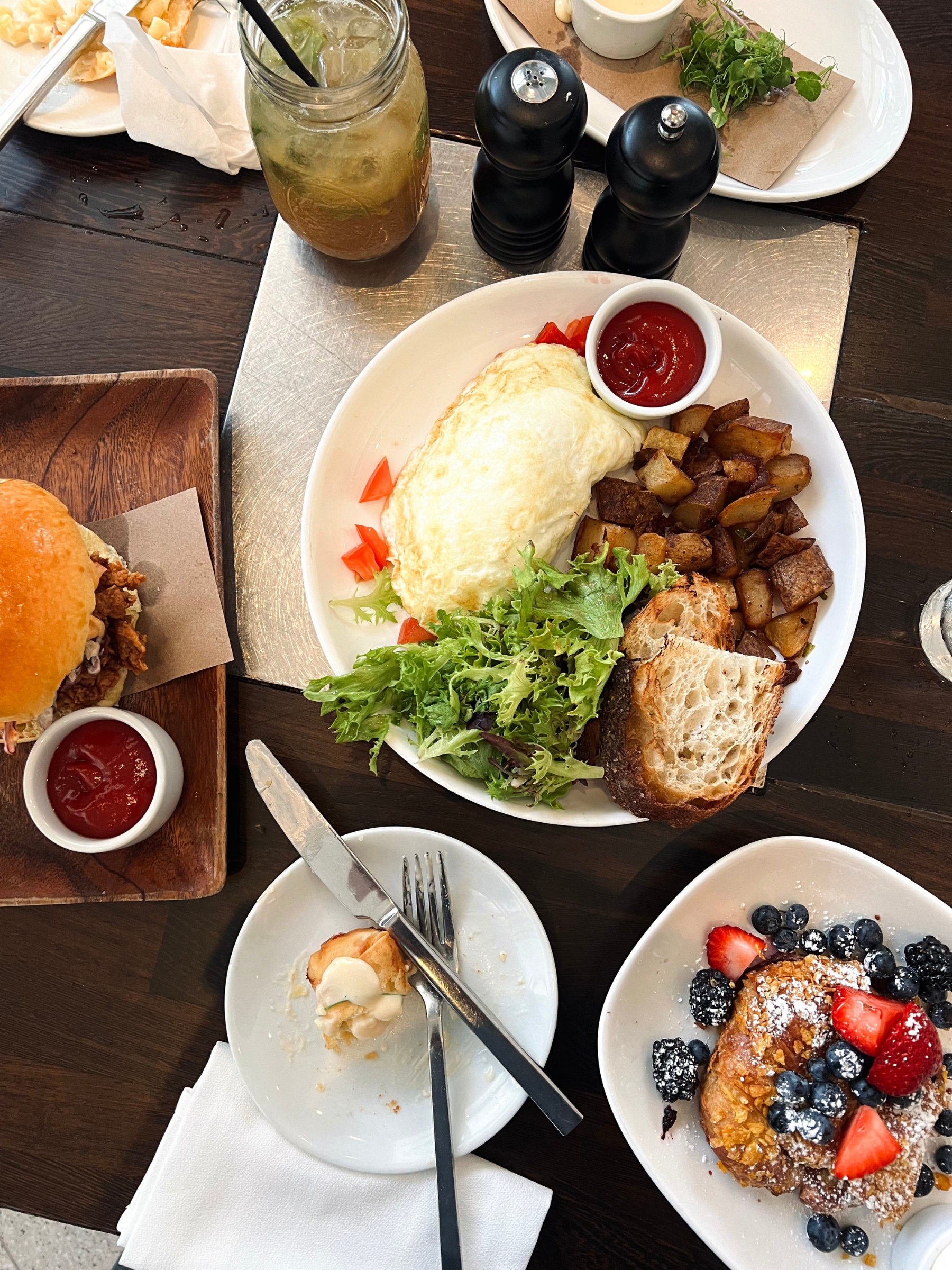 This french toast is encrusted with a cornflake crust, paired with a sweet, fresh berries compote (sauce), and topped with mascarpone cream. At this point, I’ve had this dish every time I’ve visited. And I’m not really a big french toast person, so this says a lot. Most french toasts I’ve had, always end up super soggy. But Cafeteria does this french toast well by making it crispy, yet soft.