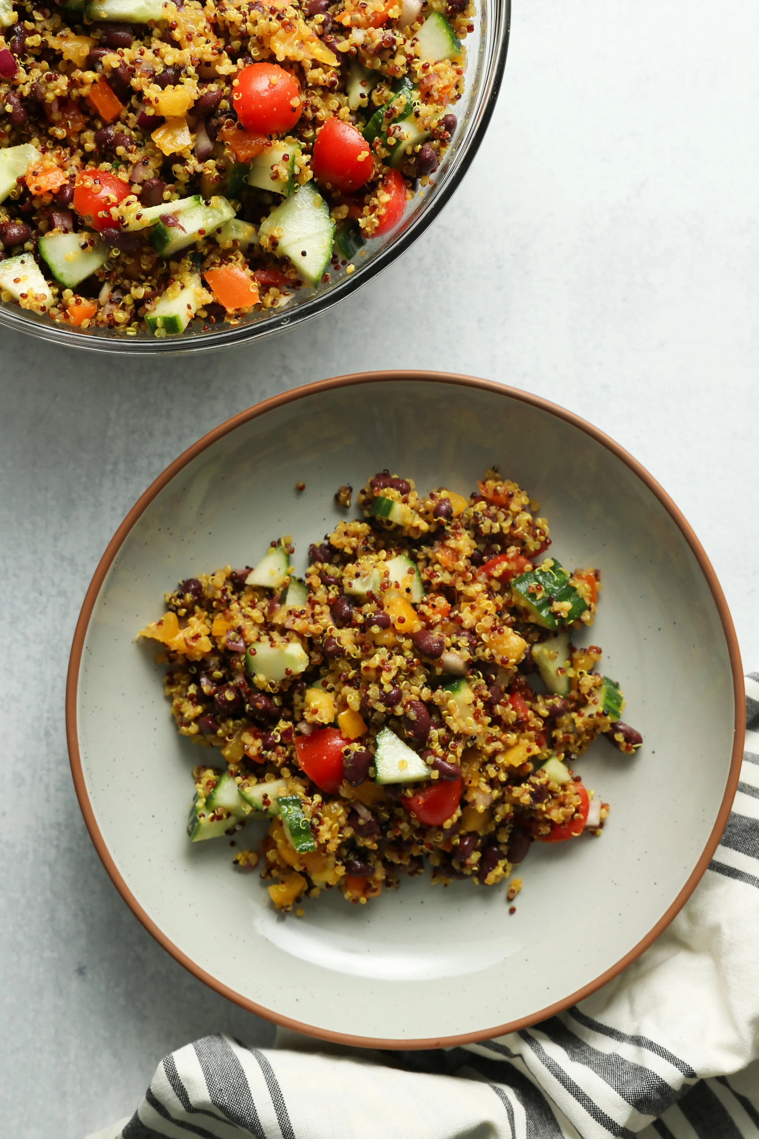 As a registered dietitian, I love creating meals that are simple, nourishing, and budget-friendly. This vegan quinoa salad is colorful, filling, and keeps well for several days—making it an ideal meal prep salad.